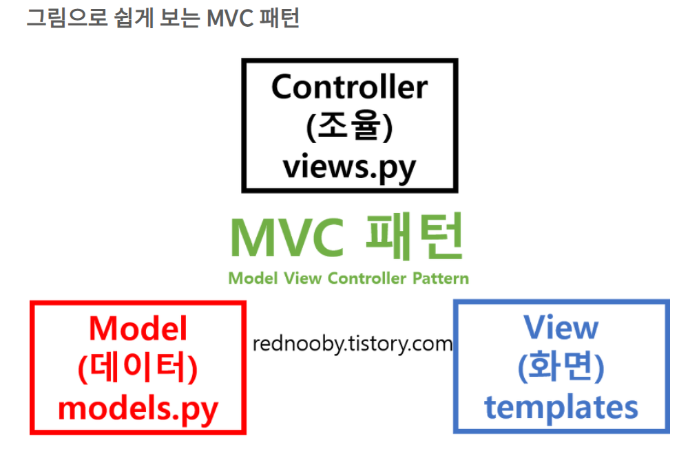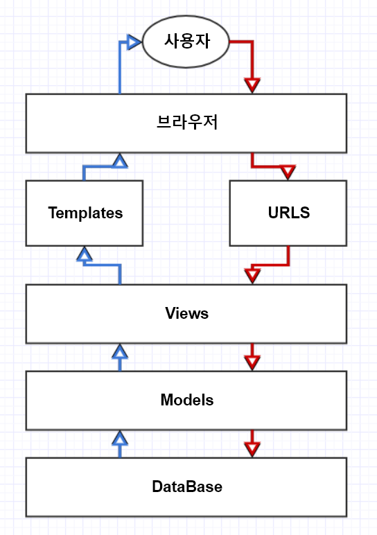 3. View는 1번과자를 Templates에 전달하고 html과 조합되서 브라우저 사용자에게 보여진다.