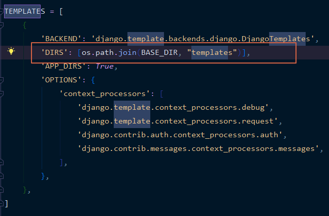 html 파일 생성후 config - setting.py 에 TEMPLATES 부분에서 저렇게 작성해주자 , templates는 디렉토리 이름임 그리고 새로고침하면 html이 적용된걸 볼수있다 !