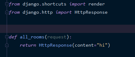 templates 디렉토리 생성후 그안에 all_rooms.html을 만들어주고 , hi를 적어준다