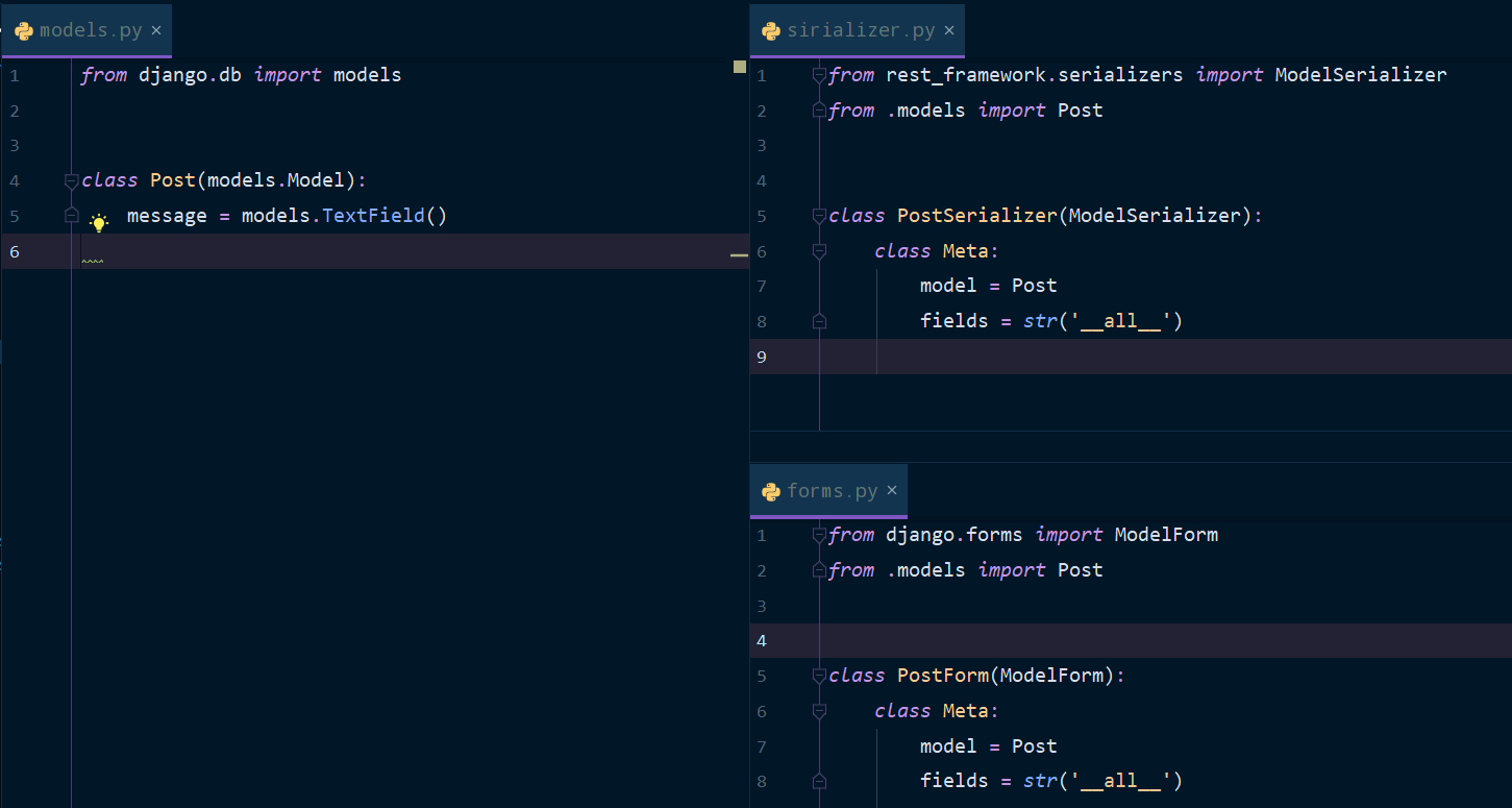 Serializer/ModelSerializer는 기존 장고에서의 Form/ModelForm 과 비슷한느낌이다.