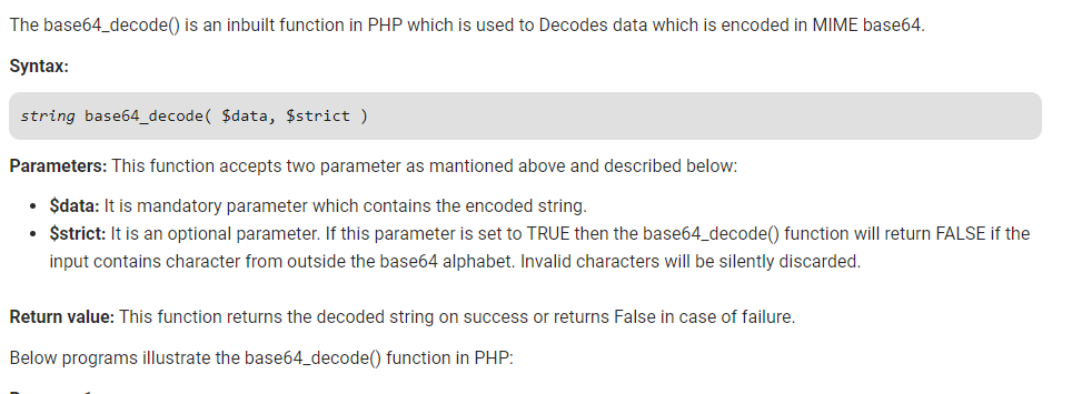 9. base64_decode() => 출처: https://www.geeksforgeeks.org/php-base64_decode-function/
